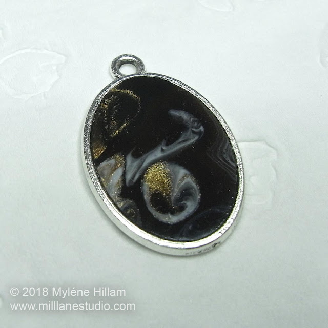 Depending on whether you've chosen a deep or a shallow bezel, you can dome a layer of resin over the top but this bezel is a little too shallow for that. Besides, I like the way the resin is sitting flush with the rim of the bezel.